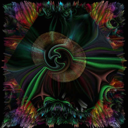 Actually, Ultra Fractal has built in layering capability, as well as merge modes and transparencies similar to Photoshop. This allows the artist to add layers and layers to their work, then render it all at once as a finished piece. For this one, even the frame was done in the fractal program.