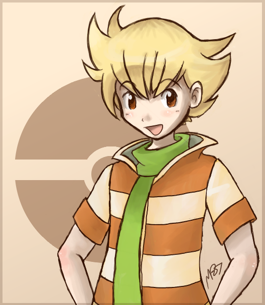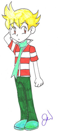It scanned a bit tilted...Oh well.So, I've decided to make artwork dedicated to Barry/ Jun from Pokemon. I've always loved that spaz since the day the game was released and I bought it. It's just a simple drawing on paper, but once I get a tablet, I'll add some nice effects. Enjoy!