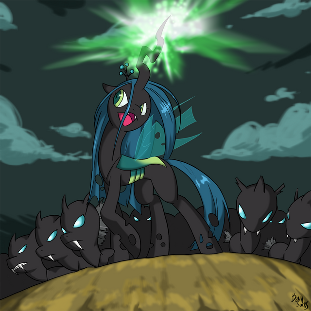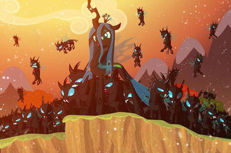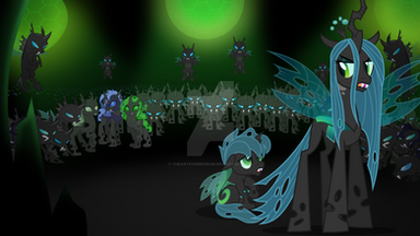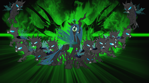 Today is my 1 year anniversary of being a brony. It is thanks to the song 'My Little Changeling ' by Omnipony that I am a brony so I decided to make a changeling wallpaper as without the changelings badassery I never would have had the curiosity to watch the show.This wallpaper took much longer than most other ones I do and I spent pretty much all of today making it. This is because I had to do a buck load of vectoring myself including the background, Commando changelings and the other grounded changelings.