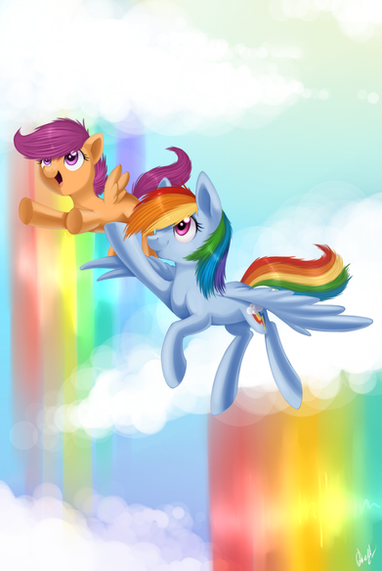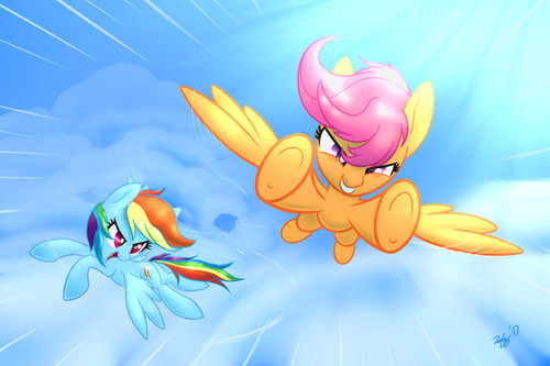 That's so cool that RD is taking Scootaloo under her wing and teaching her everything she knows! I hope Scootaloo will learn how to fly and get her cutie mark at the same time I would definitely love to see that! Anyways, great job