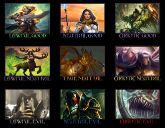 another pretty good chart, though I don't know about the lawful neutral in Vrook. I would say he was more Lawful good, though I this was put together well. Nice use of screens and art, though I'd have tried either going all ingame shots or artwork...