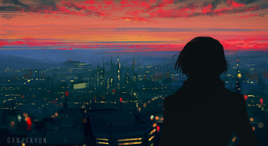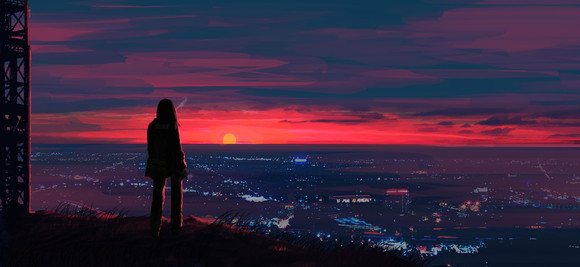 This view over the city with the bloody eclipse on the horizonΒ brings a sense of adventure and danger simultaneously. I love it
