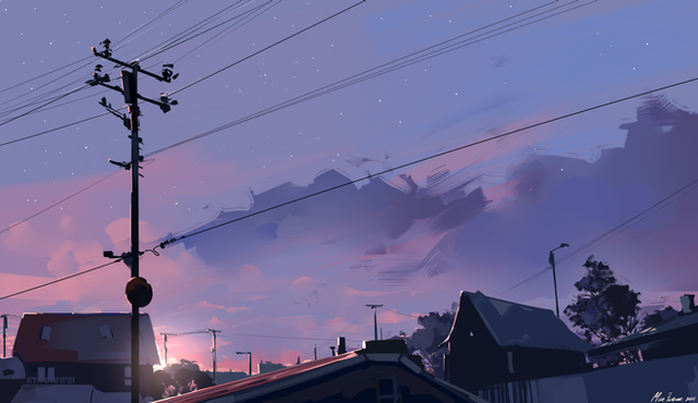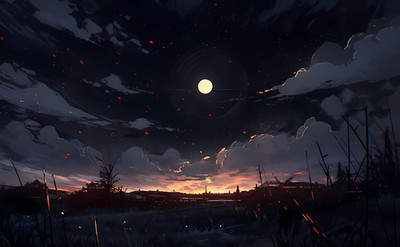 #clouds #environment #forest #landscape #nature #night #sky #stars #sundown #sunset #aenami