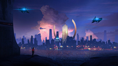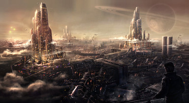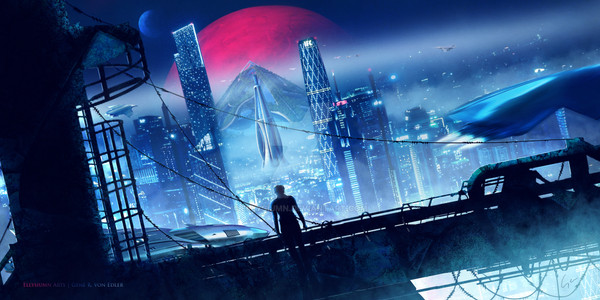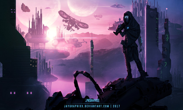 Sci-fi landscapes are one of my favorite subjects, but I believe that an element which could be overlooked here at first is the figure closest to the shot's perspective. He certainly has an air of mystery to him