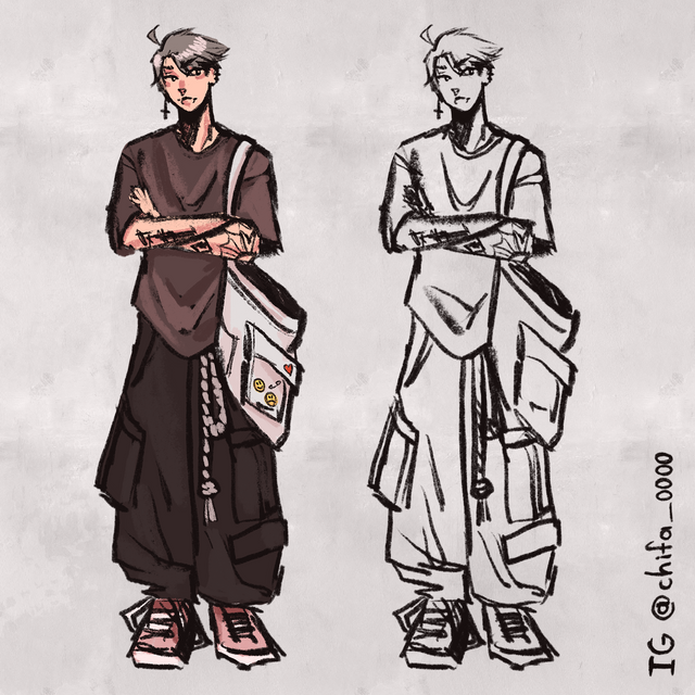 #digitalpainting #animeandmanga #blackandwhite #characterreference #fullbody #illustration #lineart
