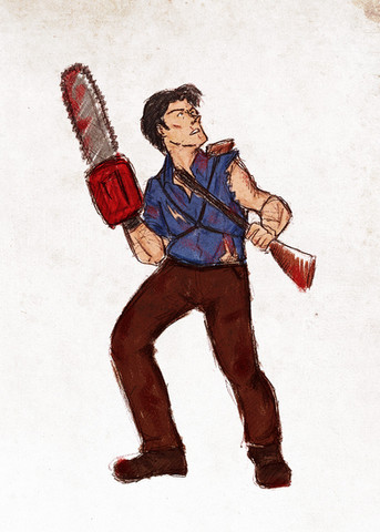 another quickie--this time we return to Bruce Campbell! Or his character from the Evil Dead films, Ashley Williams.While Ash does eventually become amazingly badass (especially by the second film)--it's really hilarious how completely useless he is through the first half of the first movie.