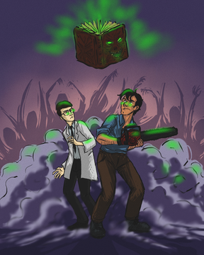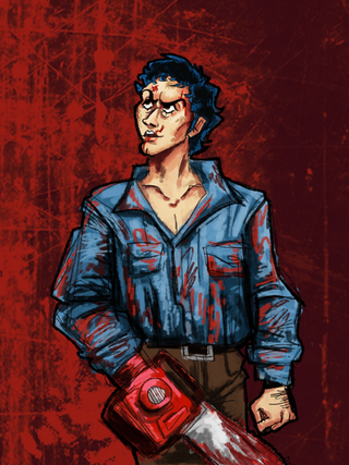 Woo, finally some Ash Williams stuff againsketchbook, scanned and coloured/textured
