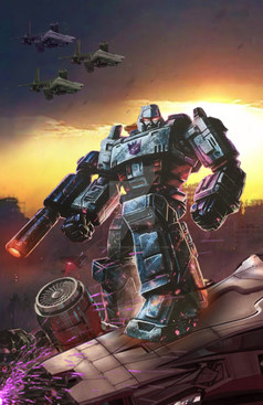 I have to say I like the addition of Starscream in the background. Whether he is planning another Deception take-over or actually doing his job, he's usually never far behind Megatron.