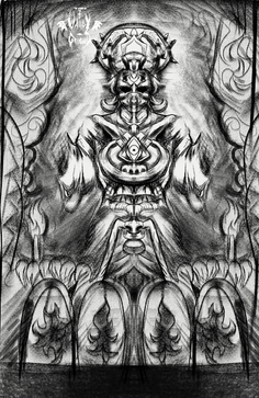 Βασιλικος Δαιμονας ✦✦✦ Horned with a crown, crowned with his horn(s), his existence is hatching new powers for the magus. ♦: Daimons are not Demons, but ambivalent spirit entities, inferior immortals. They call us while we doze - with distant whispers. Sending us inspiration and enlightenment, while veiling themselves and only appearing in utmost solitude and exaltation.Full Text on the Aynbath Gallery site: Aynbath Art Site