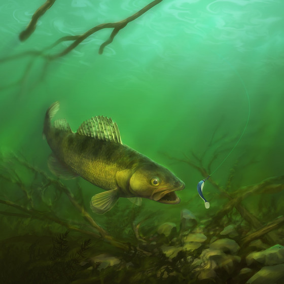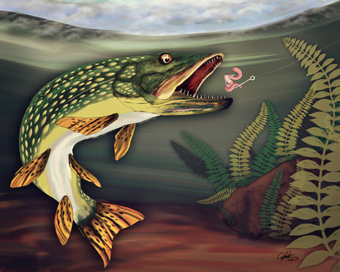 #digital #fish #pike #aerroscape #digitalart #fishing #lake #lure #noai #painting #underwater