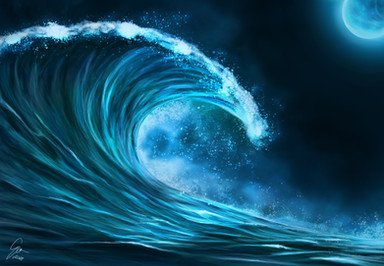 Beautiful. I really like the rippling way you portrayed the water, and the bits of purple and green with the blue gives the wave a rather surreal appearance. This is a lovely painting. Β