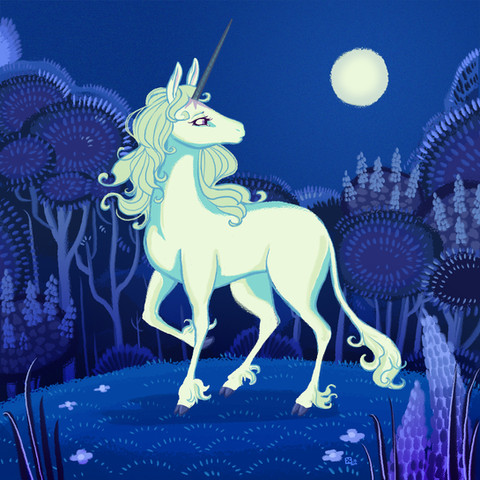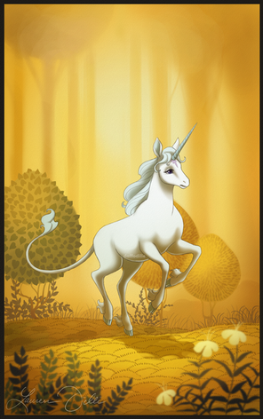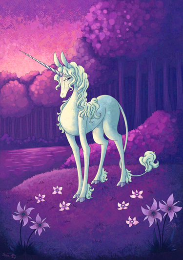 "The Last Unicorn" is both a favourite movie and book of mine. Here, the unicorn has returned from her journey, the same and yet changed, bearing a burden of regret that not even coming home can relieve.Not sure if I'm finished with this one ... durr.