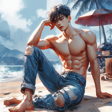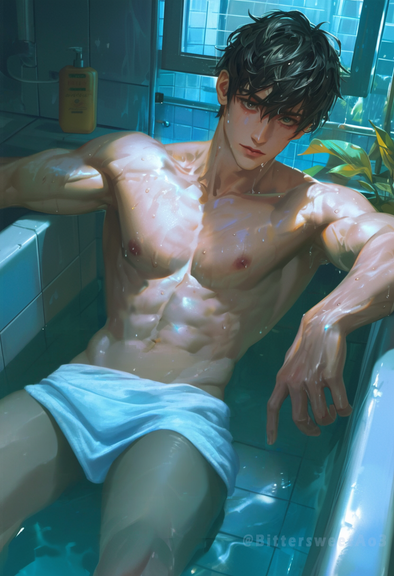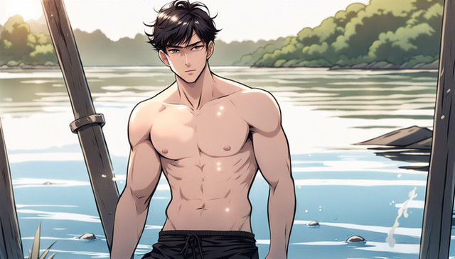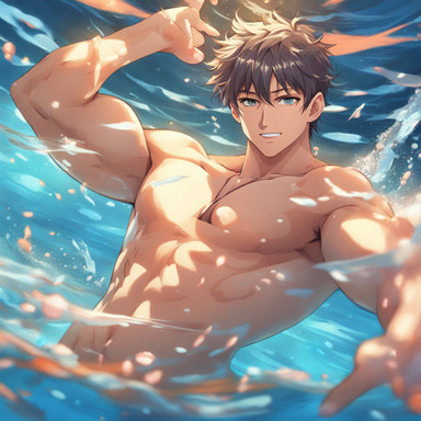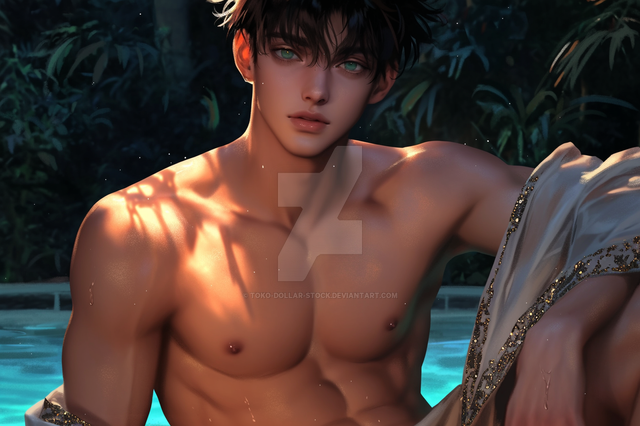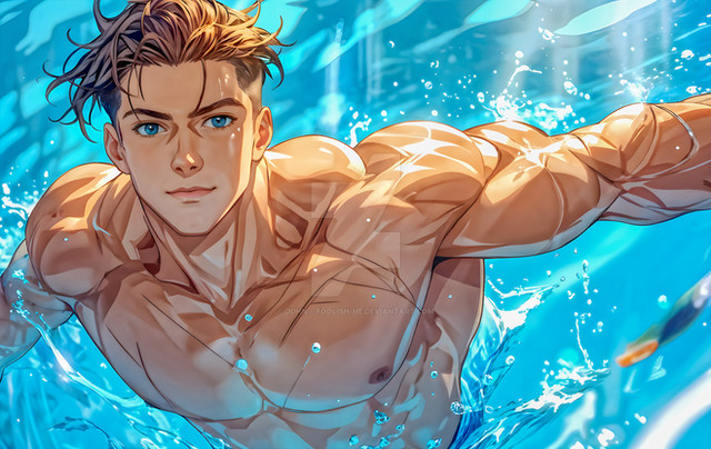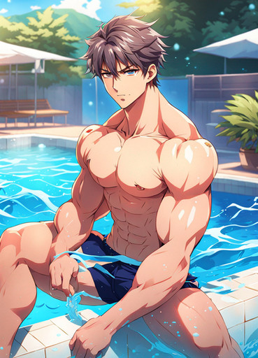 #anime #dark #hair #handsome #male #man #muscular #outdoors #pool #relaxation #sexy #shirtless #summer #sunlight #water #wet