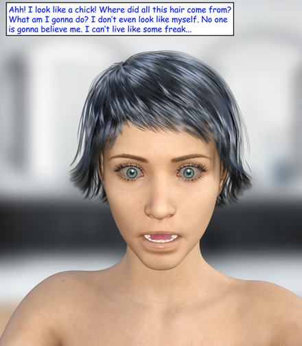 The worst was yet to come. After the initial transformation mere moments past that changed Stan into a skinny waif of a woman. A plain Jane if he was being generous. But then mountains erupted from the flat plains, filler plumped out lips and artificial enhancement curved her out. When she glanced at her reflection her botoxed face expressed the only expression it could shock! Not that she knew her name was now Mandy Moundfuls legally changed, but the compulsion. She would spend fortunes to max out her lips, breasts, and butt implantations... A hex that kept on giving for she was not sorry; only sorry for being caught.