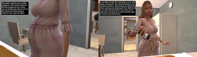 On the left a man made fun of his friend's pregnant wife. Upon realizing she was a wizard begs for forgiveness. But she agrees not to take a specific action. The second (right) when ever a man visits his friend, who says he coddles his pregnant wife too much, takes on her appearance.