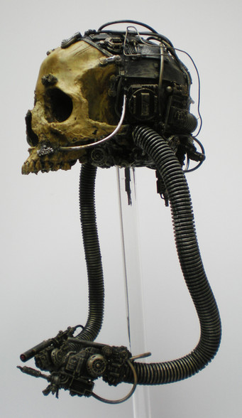Is there a backstory behind any of your work? Maybe this is some sort of computer using the brains of the skulls making it up for memory storage? A self-aware computer following the robot revolution adorned in the remains of the extinct species it studies as jewelry? Three people having given up their physical bodies for immortality as a single robotic being?