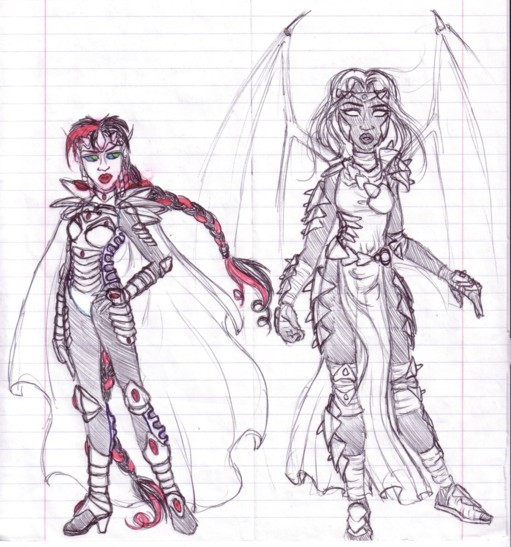 Concept art of a demoness for a universe I was creating.Hand-drawn with pencil and pen, coloured in Photoshop.