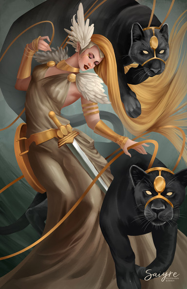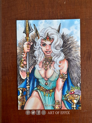 #colorpencils #copicmarkers #freya #goddess #goddesses #liners #markers #mythology #norse #tradingcard #watercolor #sketchcard #pernastudios #alcionesilva