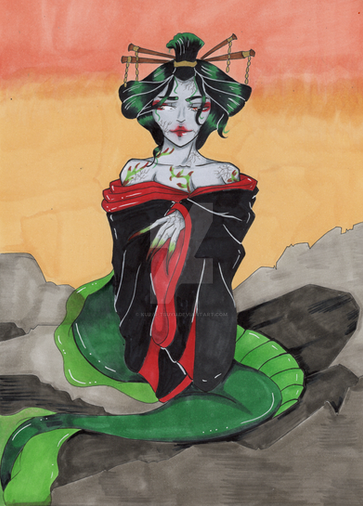 #japan #toyotama #toyotamahime #豊玉姫 #copicmarkers #goddess #goddesses #japanese #japanesemythology #liners #mythology #tradingcard #watercolor #sketchcard #markerstraditional #pernastudios #alcionesilva