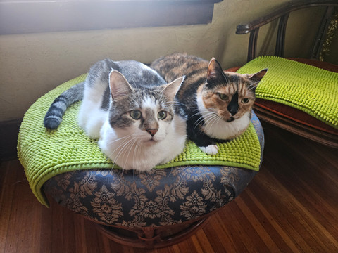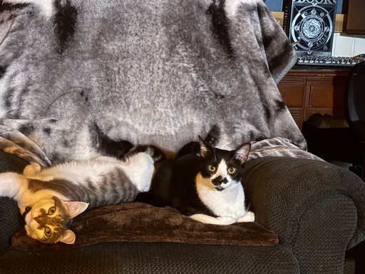 Just a lion-head and a cat sharing a bonding moment while their owner takes a photo of them. These two are my pets Leo and Grayson. I was lucky to get a photo of these two together when the chance called for it. X3Precious babies.