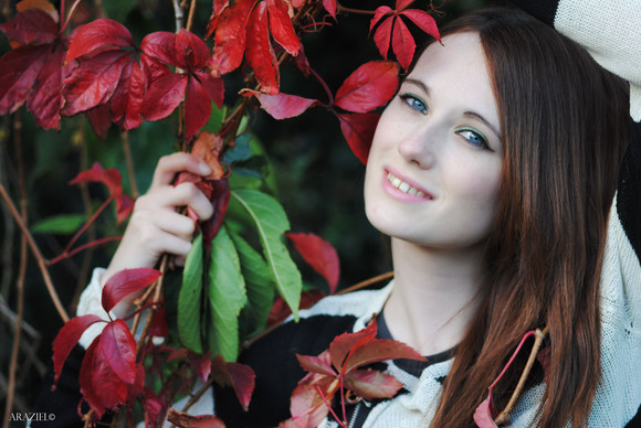 Świetny kadr, skupiony na modelce. Kłącza roślin fajnie opływają włosy modelki z lewej strony. Świetnie dobrana głębia ostrości. Podobają mi się również cienie na twarzy modelki oraz naturalny wyraz jej twarzy.