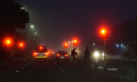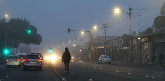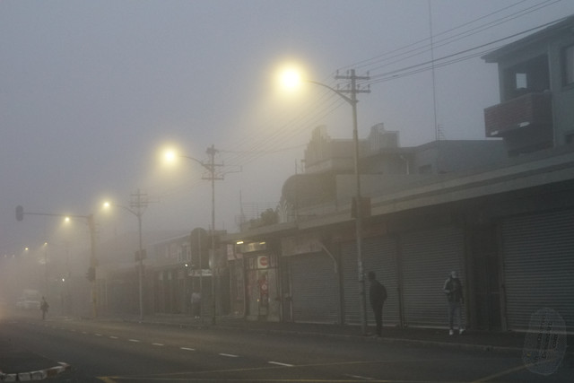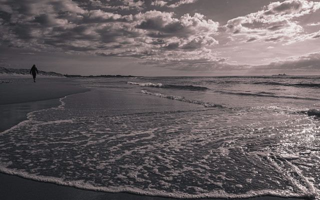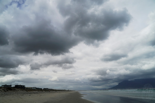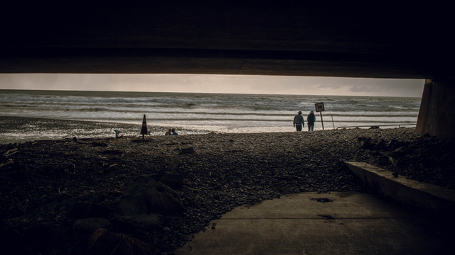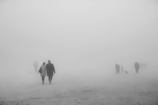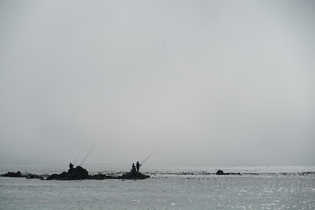 A view across the bay with a 500mm lens compressing the perspective. The vignetting is largely a function of the haze.