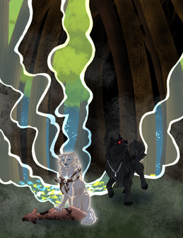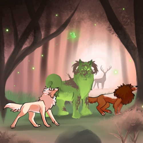 11. Dark spirits have been seen roaming the lands and causing strife for the living. Depict your tokota, strong and unintimidated, teaming up with Sikrinerk to chase them away.