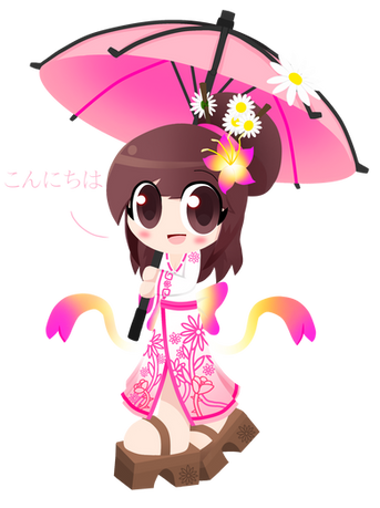 Haruchan is a fairy of a cherry tree.She goes north, traveling with the bloom of a cherry tree.