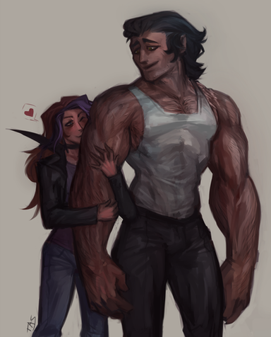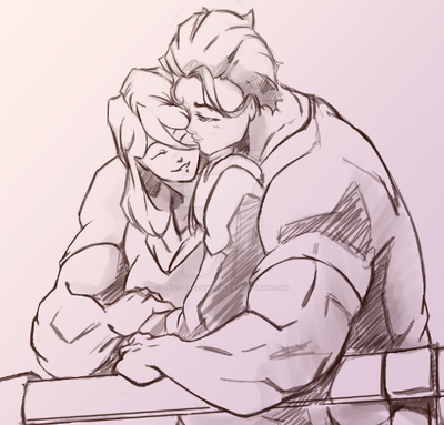 When your partner's 8+ feet tall, it helps to have a hand up to get face to face.Cyros and Mal are mine, as is the art.