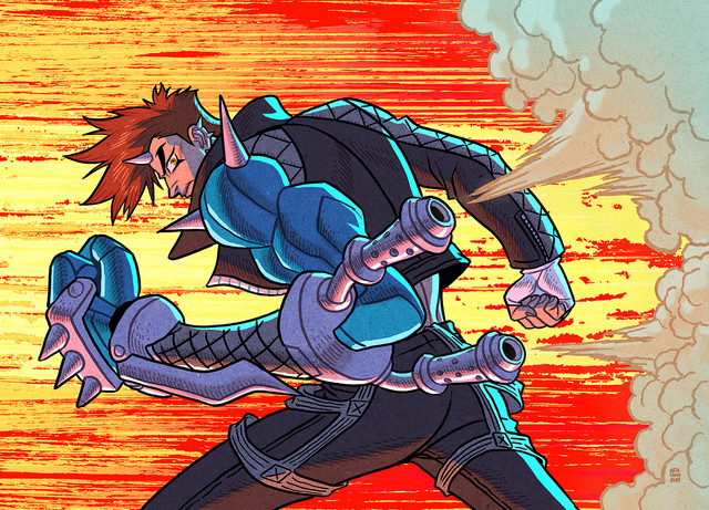 Yess! I love how edgy and gritty your line and colouring is! Such a groovy character design, so many belts!