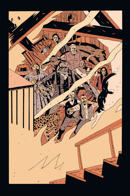 lols, i see lots of fish and lots of dead people ... but most importantly .. a gun-man on a horse on a ship .. that's just awesome .. not something you see everyday XD