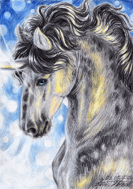 Here is a peek to the future when my Cavitto stallion Sidus will be full grown. I don't want to age him yet but I couldn't think anyone else more fitting to these lines than my aurora borealis boy.Character and picture © me