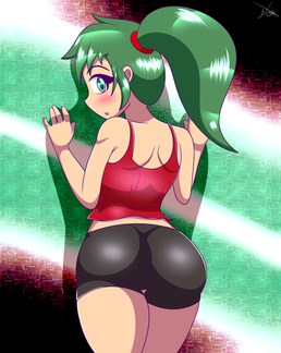 #anime #ass #boobs #booty #breasts #butt #cute #girl #kawaii #legs #manga #moe #oppai #panties #pantsu #thong #thicc #digitalart #digitaldrawing #fanservice #greenhair #lookingback #nailpolish #originalcharacter #ponytail #tanktop #titties #animemangagirl #pantypull