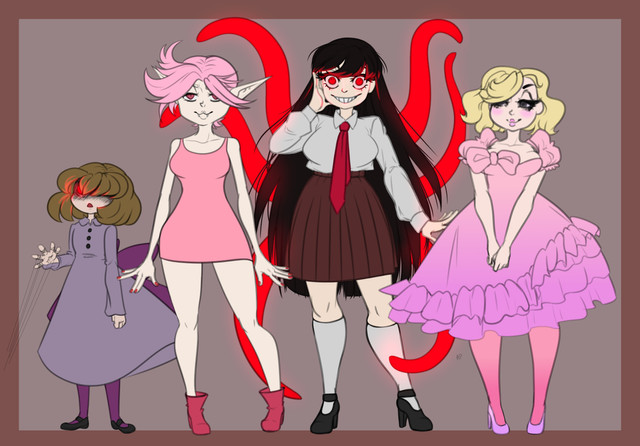 We created these girls in a week..... We can't stop creating characters, HELP US!!!The girls... Suicidal girls. they don't have names yet.