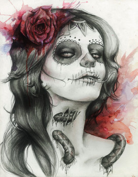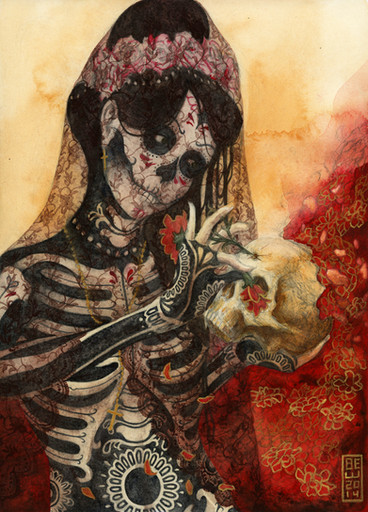 This is quite pretty, I like the mixture of the skeleton and the nice mask. You're work is consistently interesting, keep it up.