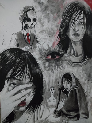 Comencé este dibujo partiendo del deseo de crear algo diferente a lo que estoy acostumbrado,sin darme cuenta el dibujo poco a poco fue saliendo y este ha sido el resultado, una pequeña locura atrapada entre el canto de los sueños y el susurro de la muerte ;espero sea de su agrado ,buena vibra y a dibujar mucho n_n