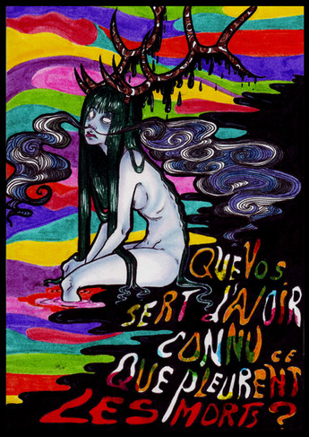 I started this drawing based on the desire to create something different than what I'm used to, not realizing the drawing was gradually coming out and this is the result, a little folly trapped between the edge of dreams and the whisper of death; I hope you enjoy it, good vibes and draw much n_n