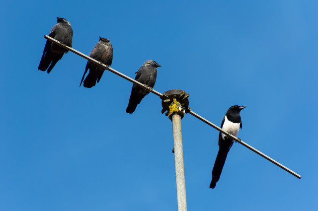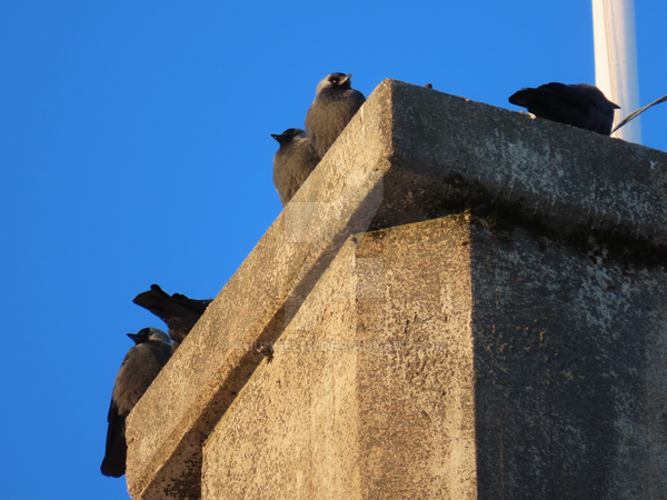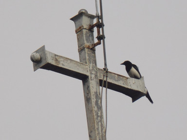 An interesting sight: two hooded crows (Corvus cornix) on the cross atop the church of my home village. One on each side, balanced as it should be.(Thanos would agree)
