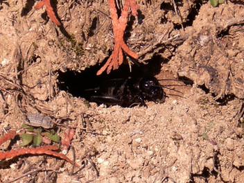A female field cricket (Gryllus campestris). Only the males chirp, as the part of their courtships towards the females.Hungary, 2023.05.30.