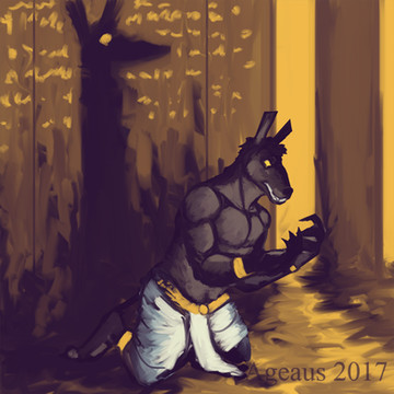 Ruined temples dot the landscapes of Egypt. They crumble back into the sands, but to those who listen their power is not extinguished. They call out for devotees, and that is why you came. This one, belonged to Bastet, and even before you set foot in the precinct, you heard her voice purring in your ears.Sheβd called, and you answered. You took the steps to the ruined court, passed all of her broken effigies, and stood where she instructed. As the sun set, the statues eyes ignited in green flames, and through them, her power flowed into you. She made you over into a perfect supplicant. Your canid form was made sleeker, flexible, and agile.