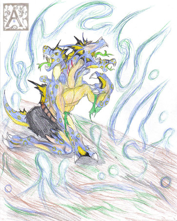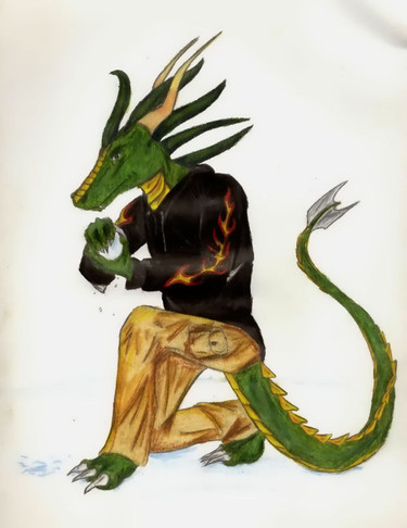 But yeah his character Ra, is not a really a nice dude, he likes to kill little dragons. So his two gods, the sun and the water decided to put him in a position where that β¦tendency becomes difficult. The energy is warping him into the dragon form, armor in some parts is fusing into scales with his skin, and in other parts it simply dissolves.