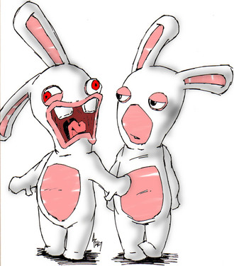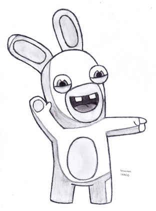 When I bought my Wii on launch day I was pretty excited. And when I got "Rayman Raving Rabbids" not long after I was even more ecstatic. Not so much for the game (although it was super fun for about a week), but more because I thought the rabbits were the cutest things ever.This was first attempt at drawing one of the rabbits/rabbids and while fans of the game will probably be able to tell what it is, others may not recognize it immediately.