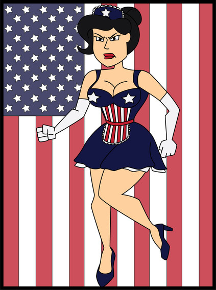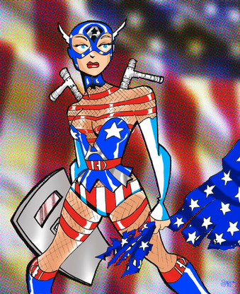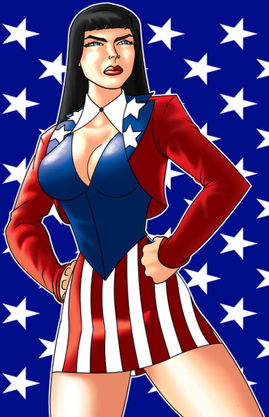 Given the nature of the character, we opted for a recruitment poster instead of a magazine cover, and because of the style of the character and the colour scheme, I thought I'd go hog-wild with the patriotic fervour.