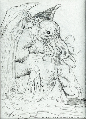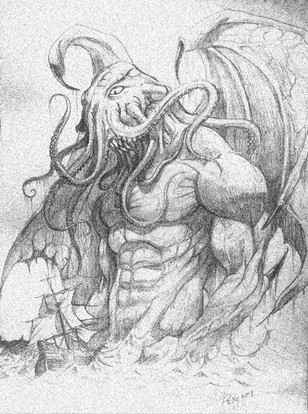 Chtulhu in pencil in my sketchbook. I did this one for practice before I do a drawing for a tattoo for a friend.Related content