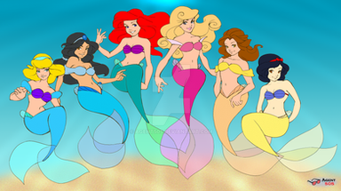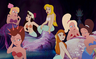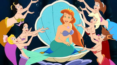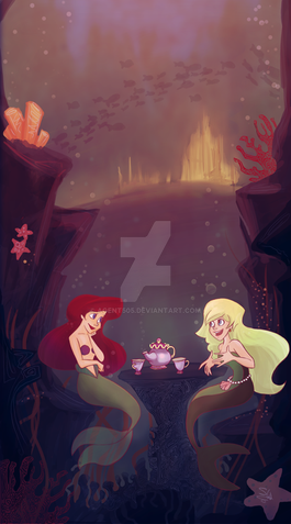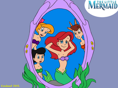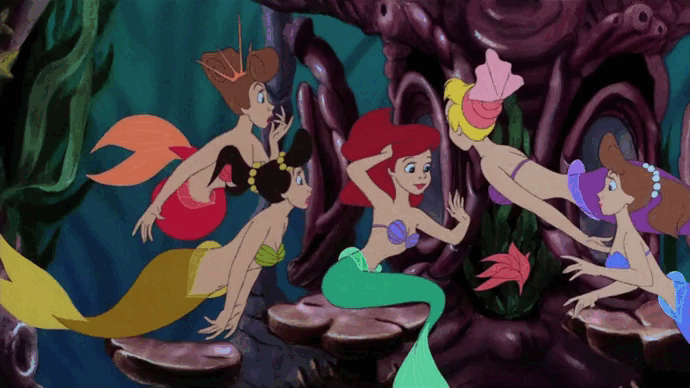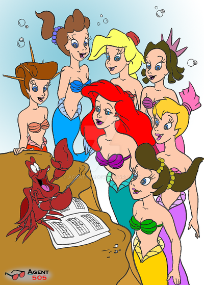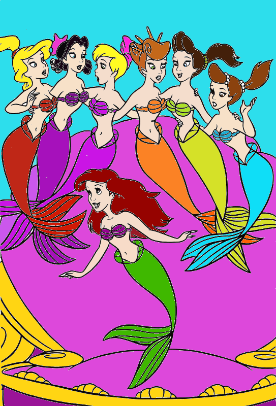 It's a lineart from the movie- the scene where Ariel is combing her hair as she sings and hums around the dressing room. Andrina, Adella and Attina are just agawk at how Ariel, the youngest, could be so in love with... who, exactly?