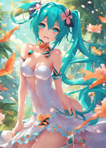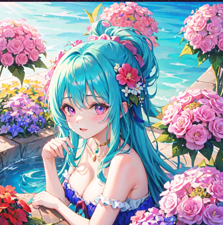 The prompt for the parser included anime girl, green hair, blue eyes, soft expression, roses in hair, and the word mermaid.