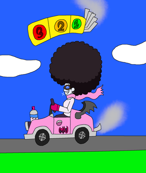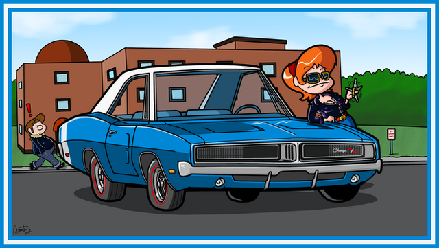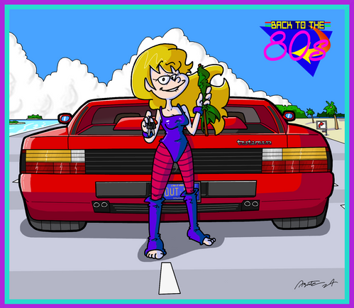 The attention to detail and the colouring are profoundly impressive and remarkable. I cannot emphasise this enough. I'm just amazed at the details on her car. I also am rather fond of the background and how very Pink Top City and 80s it is. You did an impeccable job on all of those aspects.