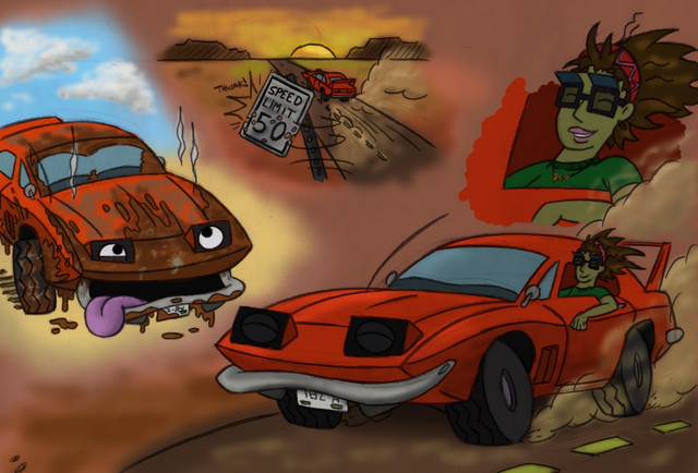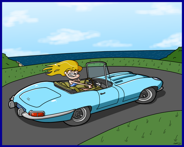 This is beautiful, beautiful work. You always did an amazing job on cars; the way you draw and construct them always render me speechless. This is certainly no exception and I must say I am impressed with this. I'm really glad that I asked you draw and colour Celeste's Ferrarri 328. She loves that car and had to get it painted purple, which her favourite colour. xD I love how she's cruisin' down the highway in it with the wind blowing through her lovely hair.