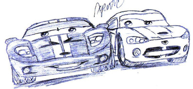 This began a surge of inspiration where I found normal car pictures and turned them into "Cars" pics. This was the first one I did and so far, one of my faves. It's a GT-40 and a Viper dueling it out. Again, I am impartial, loving both machines.