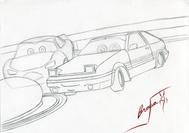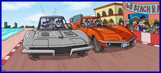 Hehe... you said exactly what I tried to express. Way to go! And yeah, I was inspired by the King and Chick Hicks here, with the cool calm King and the jittery Chick. Only I used some more modern cars. Thanks a lot for the comment!